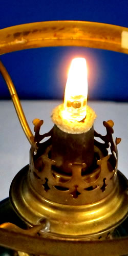 Statt einer Petroleumflamme leuchtet jetzt eine warmweiße, dimmbare 12 Volt LED und erzeugt ein sanftes, gemütliches Licht.