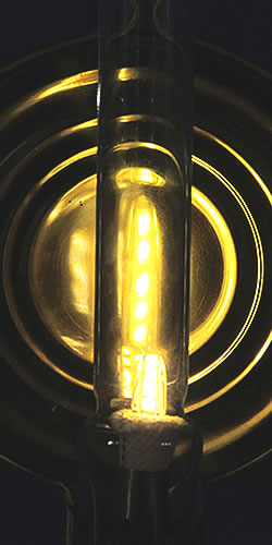 In diese relativ große Reflektorlampe (31cm hoch, Reflektordurchmesser 14cm) leuchtet nun eine warm-weiße LED.
